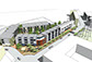 Building forms and materials recall the industrial structures surrounding the site. Deep openings in the As part of the project a historic water tower on the site will be preserved and renovated to become the iconic heart of the new development.